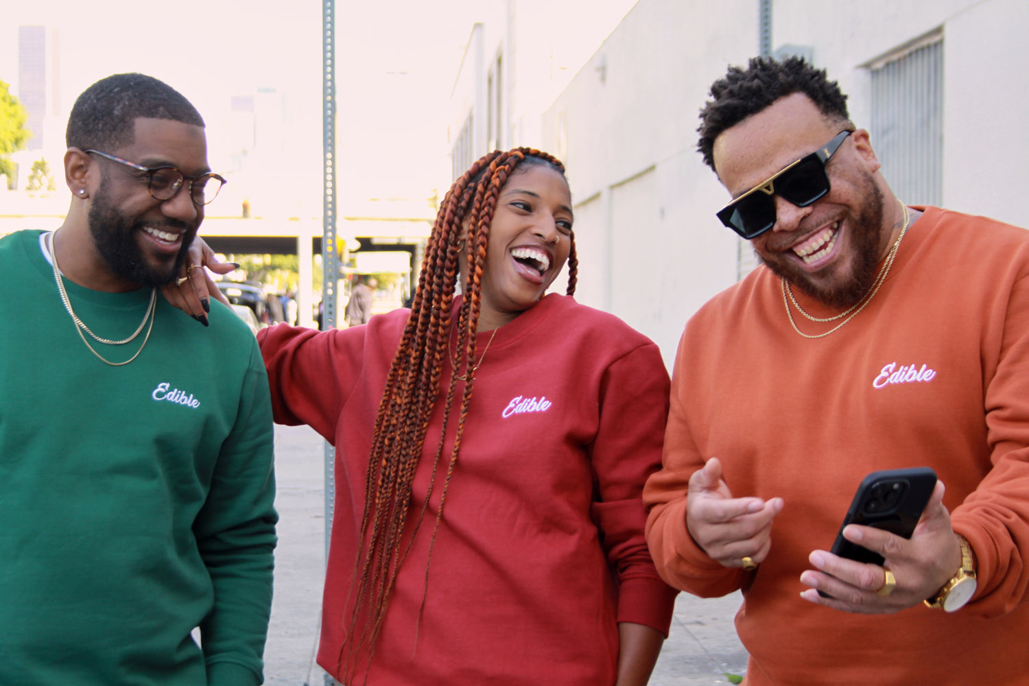 Edible can mean a bunch of things. You could be edible, you can only eat edible things or your edible just kicked in......Our new logo sweatsuit pictured.